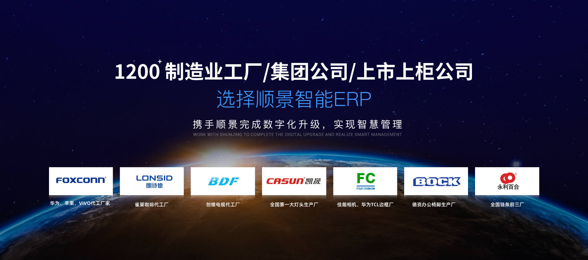 供应链管理、生产管理、财务管理、人事薪资、条码管理、智造看板。